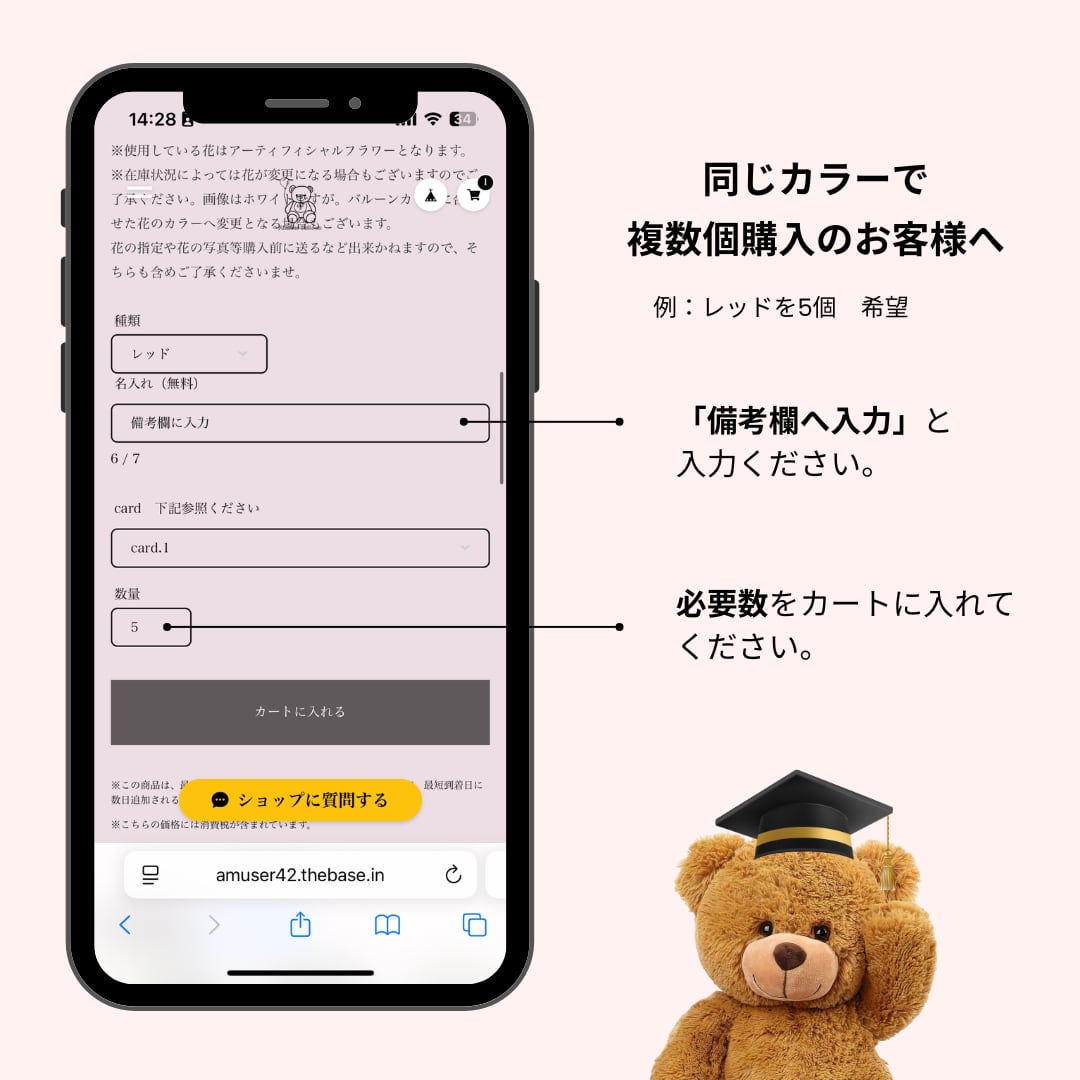 ご希望の数量分をカートに入れ、購入手続きの備考欄にお名前をまとめてご記入ください。